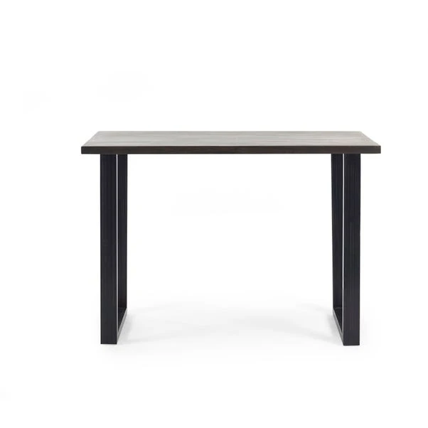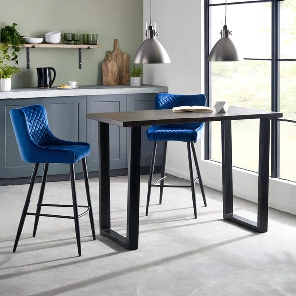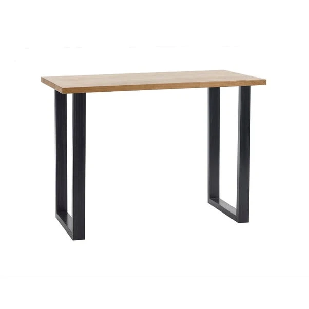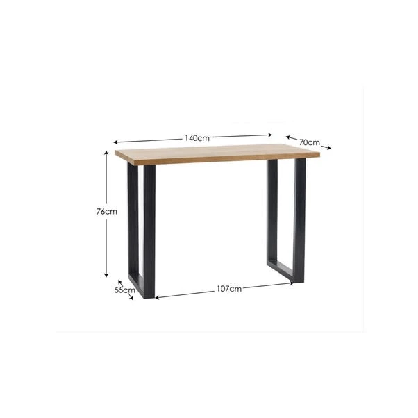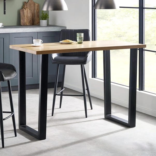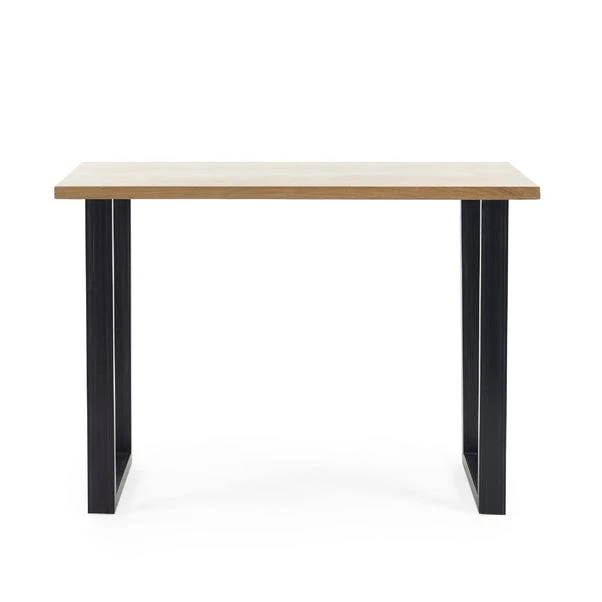 This bar table in oak is a stylish and functional addition to any bar or dining area. Made from solid oak, it features a rustic finish that emphasises the natural wood grain, adding a touch of vintage charm to the space. The industrial trapeze-style metal legs provide a sturdy and visually appealing support, creating a perfect blend of rustic and modern design elements. This table pairs beautifully with a wide range of upholstered bar stools, making it a versatile and practical choice for both contemporary and traditional settings.