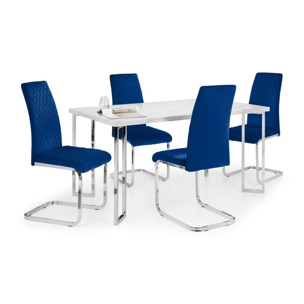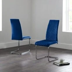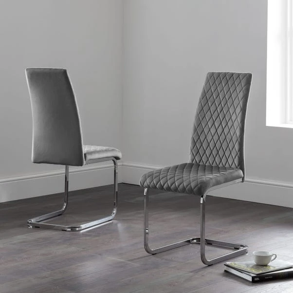 Add the finishing touch to your dining room with this set of 4 dining chairs. The Calabria dining chair is upholstered in a velvet fabric and paired with chrome plated cantilever frames for a striking look that both you and your guests will love.