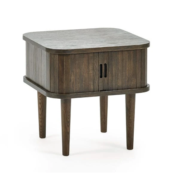 Small in size but big on style, this side table makes a sleek addition to any living room or bedroom. Its dark oak-effect finish adds a touch of warmth, while the tambour door conceals a useful little storage nook. Ideal for placing beside a sofa or as a compact bedside table, its minimal design and practical storage make it a versatile piece.