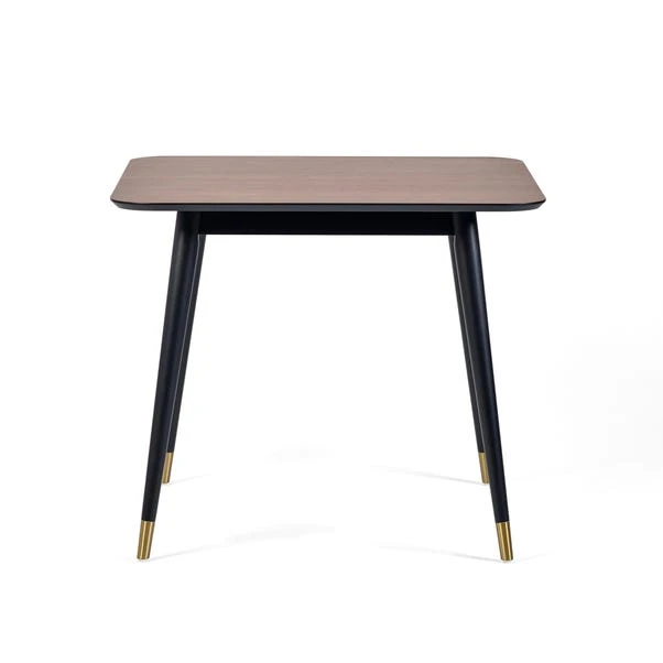 Dine in style, every night is a night at the trendiest restaurant with this Findlay dining table. Designed with a walnut effect top and striking black metal legs finished with brass tips, this stylish take on a midcentury inspired look is one that’s sure to last the test of time and fit in seamlessly to your existing décor.