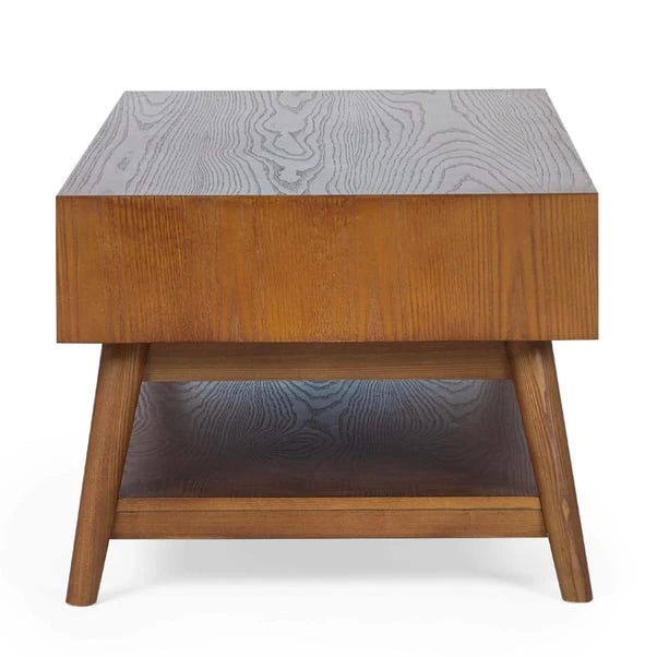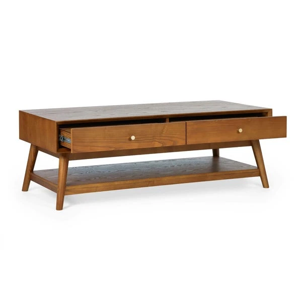 A perfect fusion of function and flair, this retro-style coffee table is made from beautiful cherry ash veneer and features two drawers and an open shelf. The spacious surface offers plenty of room for serving, stacking and styling, while its warm tones add richness to any lounge.