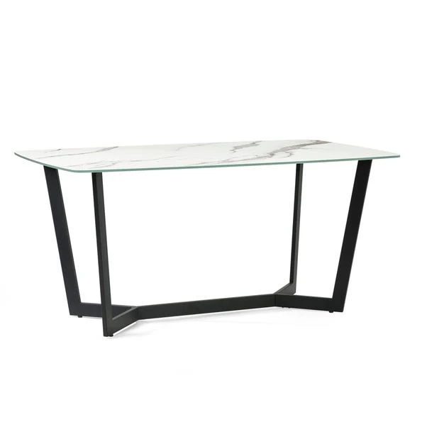 The Olympus dining table features a stunning marble top and contrasting black bases, creating a look destined for any contemporary home. This table adds a touch of luxury and sophistication to your dining area, blending classic design with modern elements to create a timeless and elegant piece.