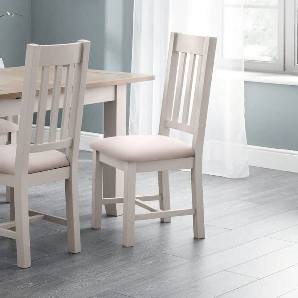 Crafted from solid oak and finished in a rich blue colourway, the Richmond set of two dining chairs offer a classic, timeless design and would be a stunning addition to your dining space. This self-assembly pair of chairs come complete with a foam padded cushion for extra comfort, upholstered in a chic linen fabric in a contrasting pewter colour.