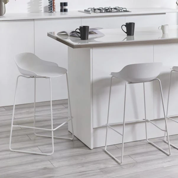 Featuring flowing metal legs and an elegant curved seat with a low back, these stools create a chic and contemporary look in any space. Whether placed at a kitchen island or a home bar, these bar stools offer a versatile and stylish seating solution for entertaining guests or enjoying a casual meal.