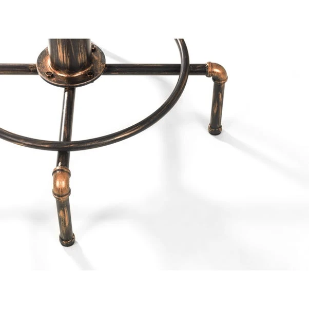 Fill your home with a touch of hydrant chic! This industrial style bar table has the look of a fire hydrant with water valve features, with a brushed copper effect finish and rustic elm veneer top. The metal frame is sturdy enough for any occasion and sure to transform your home into the trendiest bar.