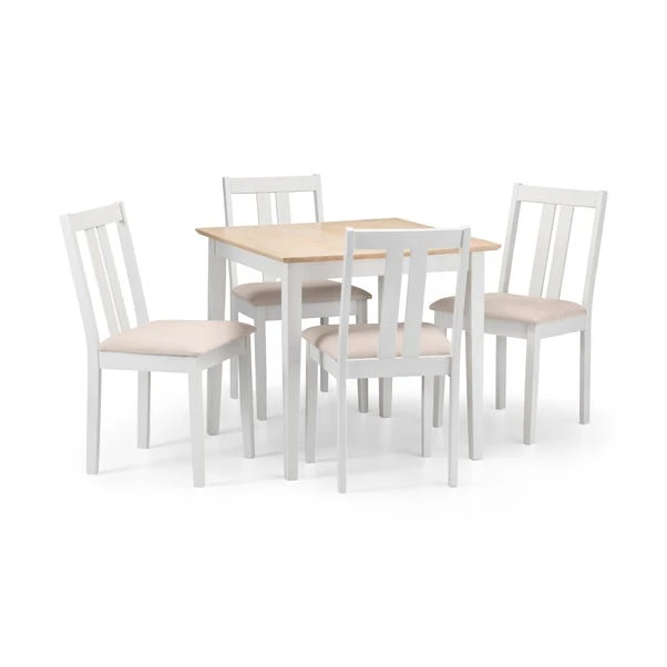 This table is an extendable and constructed from tropical hardwood with a natural and ivory lacquered finish. This table incorporates a butterfly extension system, eliminating the need to store a separate leaf. Its compact size and space-saving design make it ideal for smaller dining rooms.
