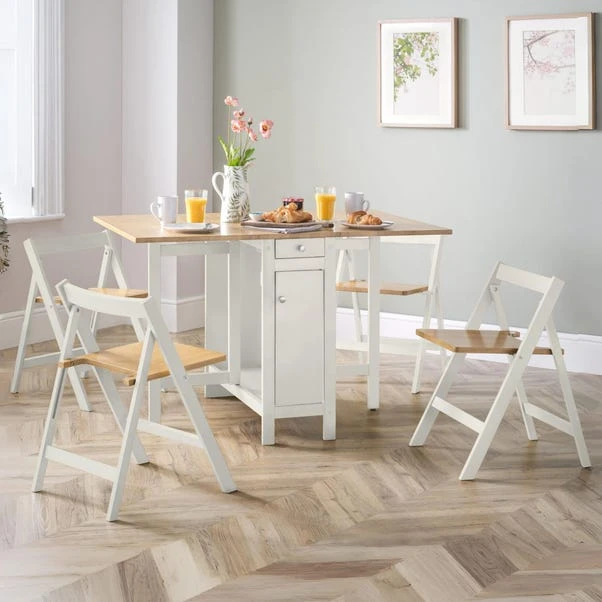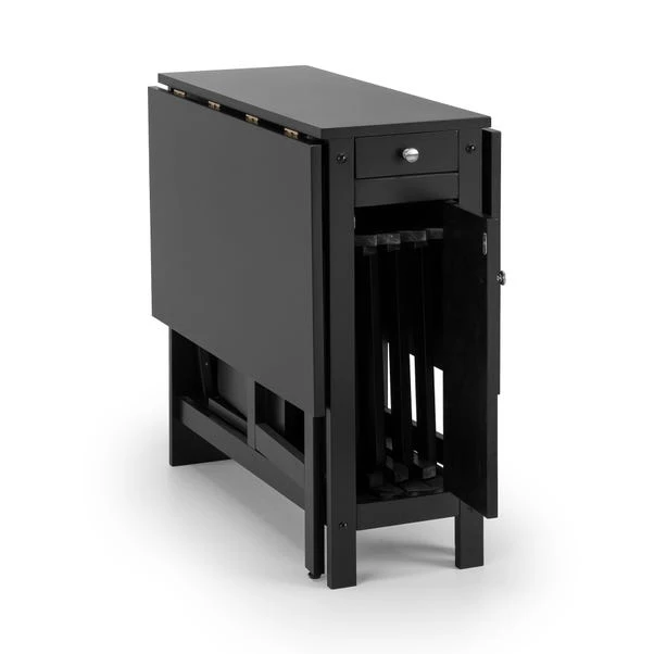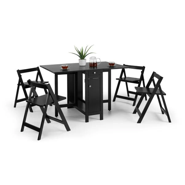 Ideal for the more compact spaces, the Savoy Dining Set is both practical and stylish. This table neatly tucks away saving space in the home and when extended comfortably sits four diners and has extra storage space. With its rubberwood construction and lacquered finish, this set is sure to stand the test of time.