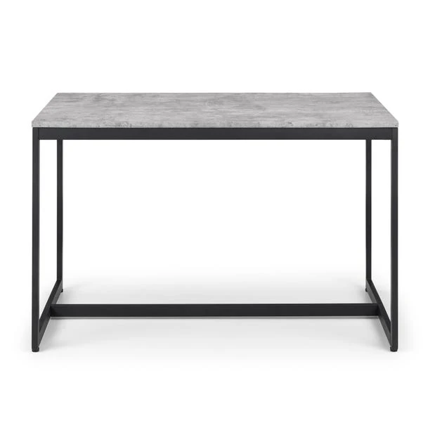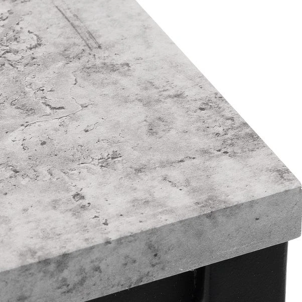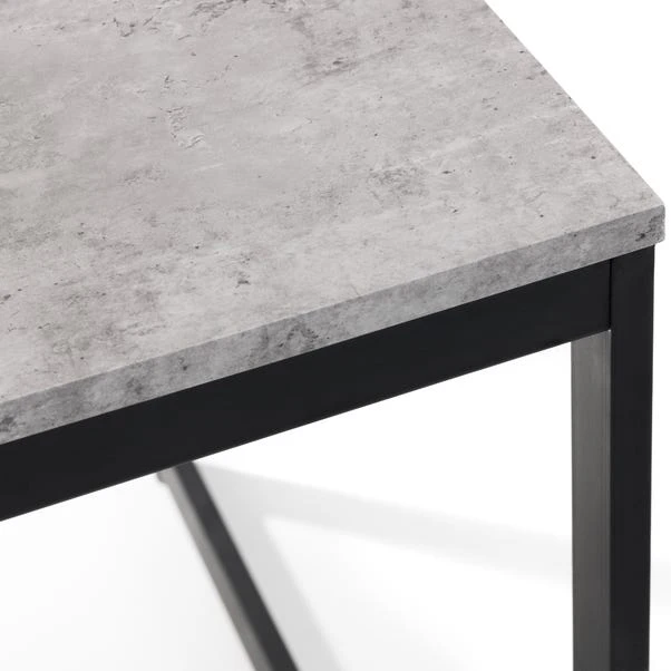 With its modern industrial design, the Staten dining set features concrete-effect table and bench tops and contrasting black metal frames. This stylish dining set would make a great addition to any modern home and is supplied with a sturdy dining table and two matching benches that tuck neatly away when not in use.
