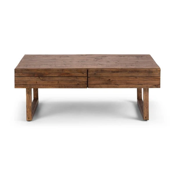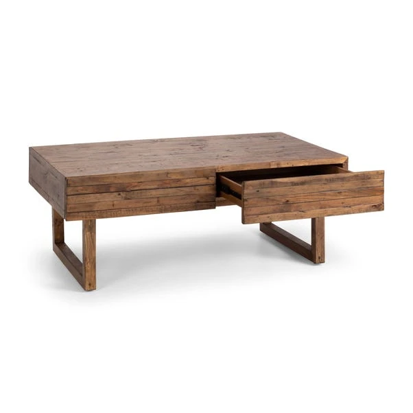 Crafted with care, this coffee table combines the beauty of reclaimed wood with superior design. Each piece tells its own story, with its unique grain patterns and character adding a touch of rustic charm to any space. This coffee table effortlessly blends classic and contemporary styles, creating a versatile focal point in your home. With two spacious drawers, it offers practical storage solutions while maintaining its sleek and streamlined silhouette.